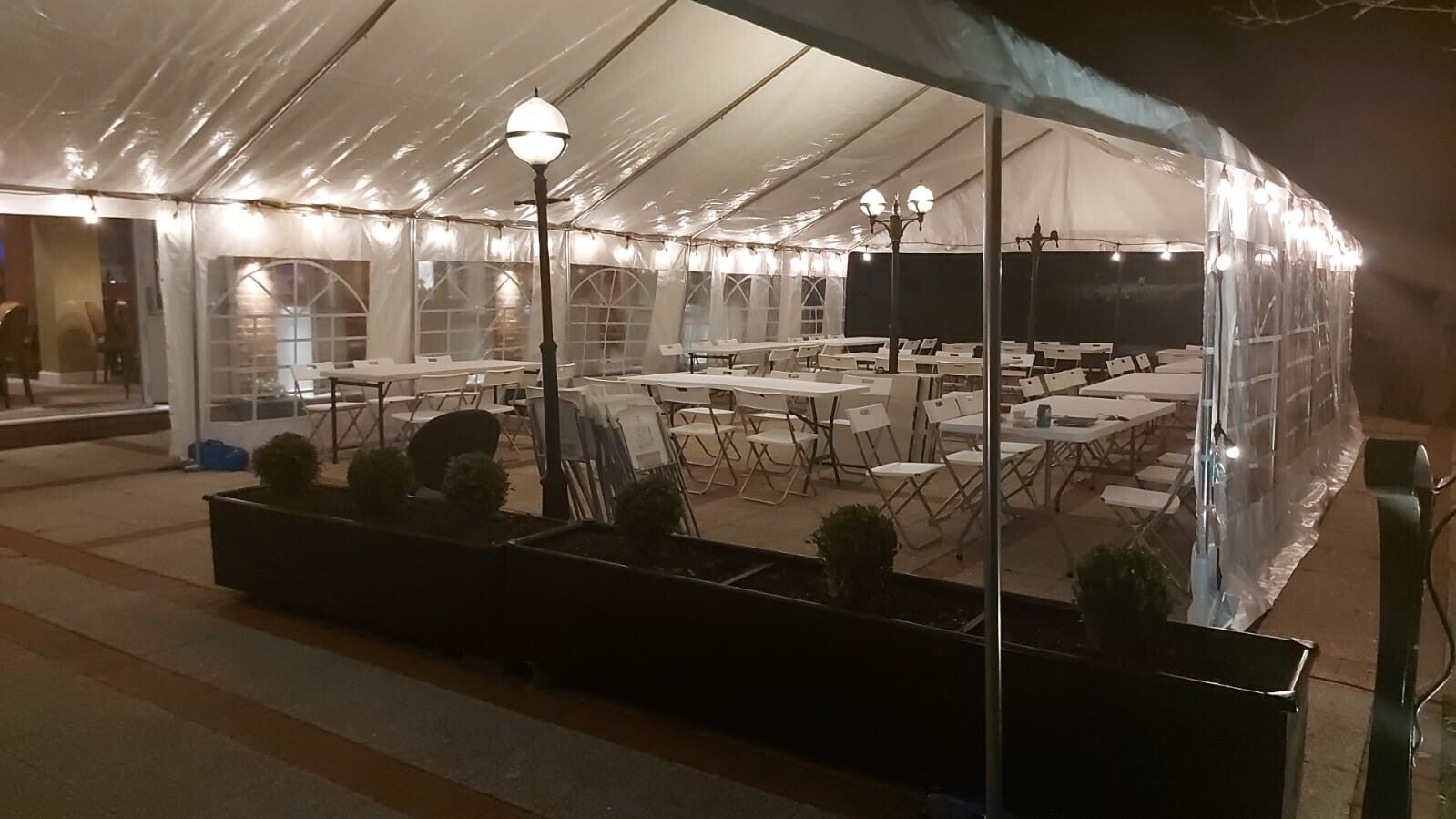 Marquee hire including set up, oval tables, chairs, lighting, carpet and generator. This package is for 100 people and additional transit fee will apply depending on your venue address